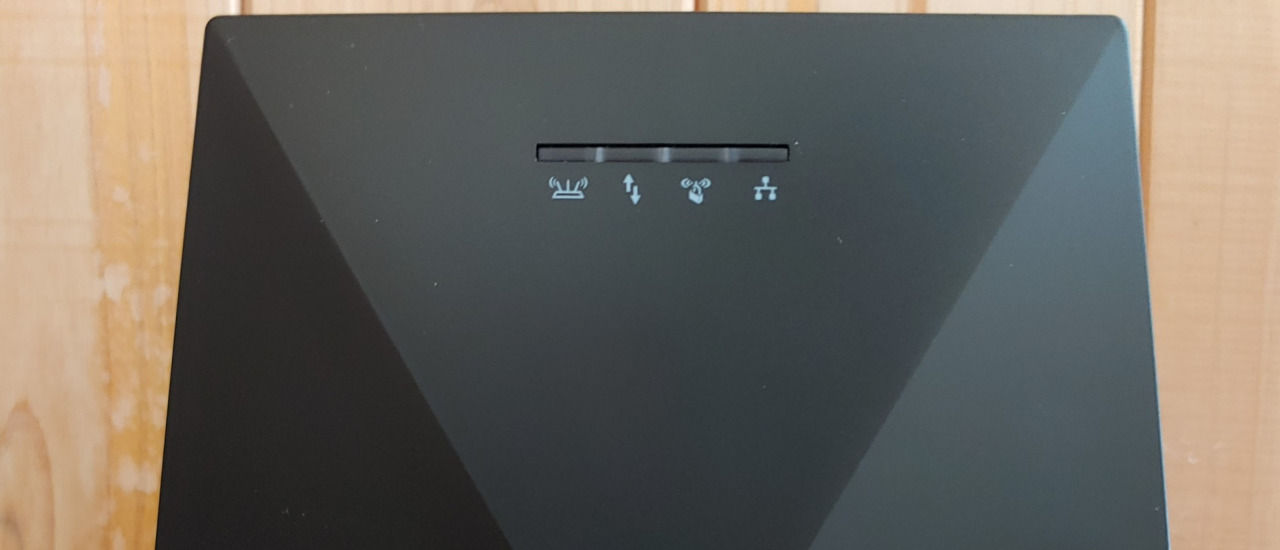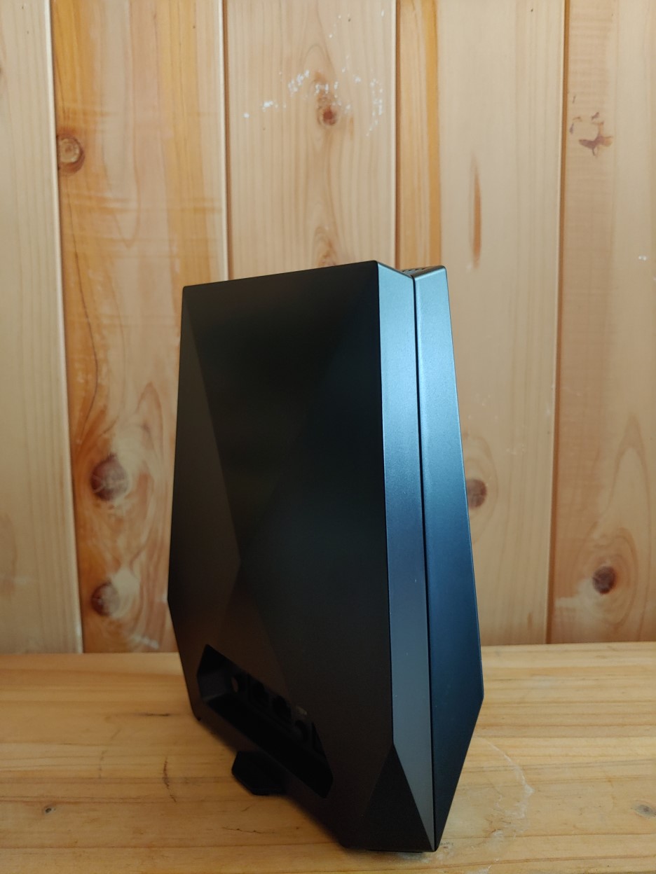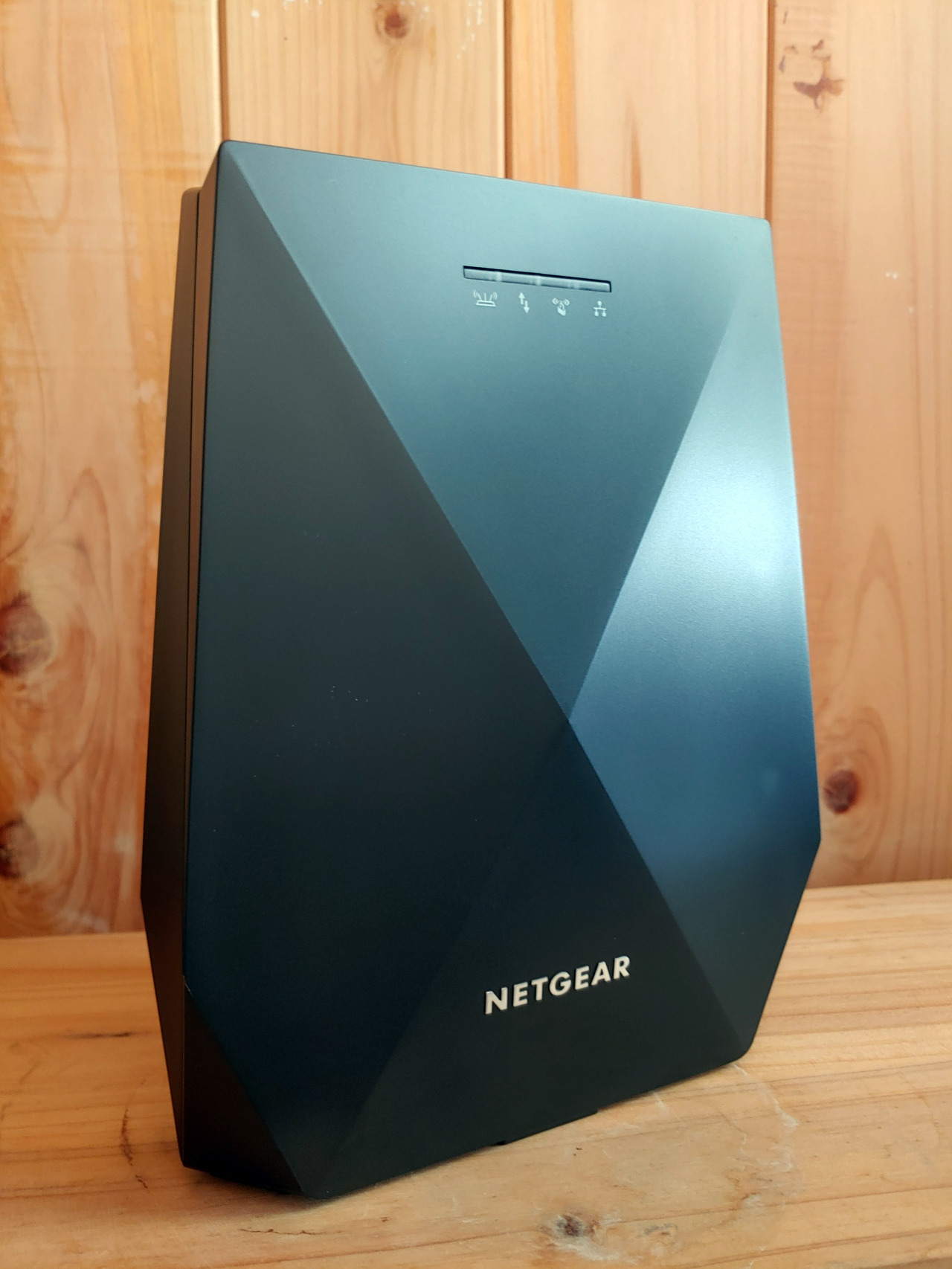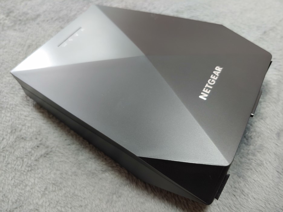 넷기어 와이파이 증폭기 EX7700의 전면을 보면 각진 4면이 중앙부에서 만나는 인상적인 디자인을 하고 있습니다.