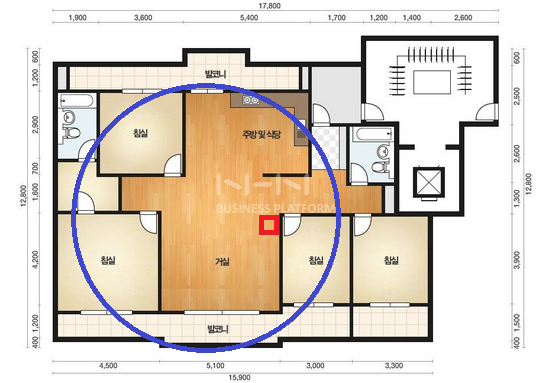 대략적인 와이파이 영역은 파란색 원이 표시된 부분과 비슷하다고 보시면 됩니다.