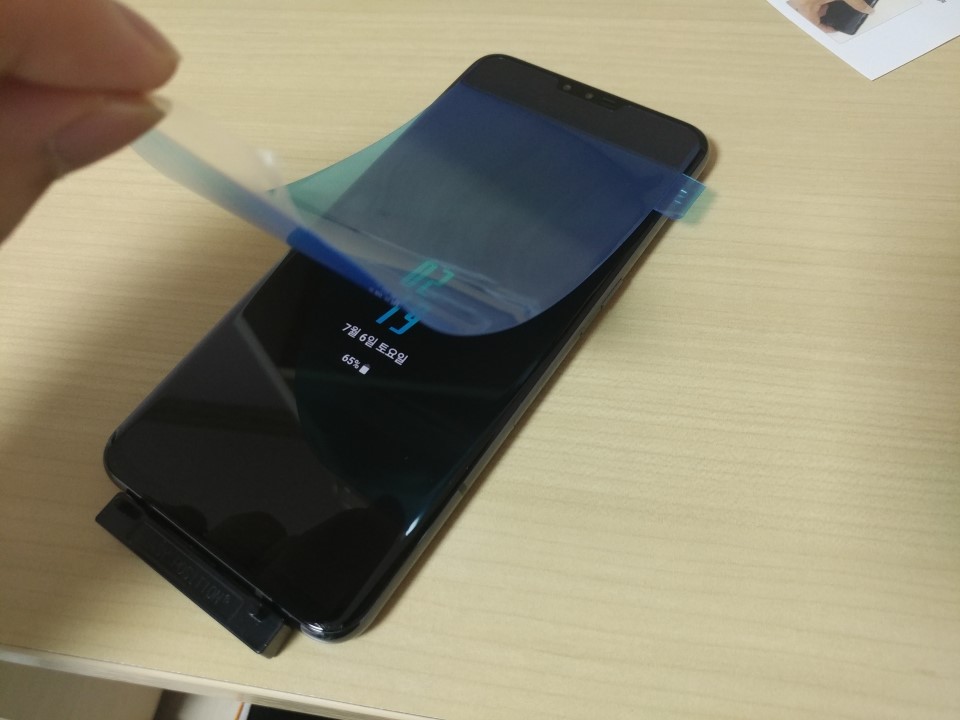 이렇게 확대해서 봐야지 액정보호필름을 붙인 걸 겨우 확인할 수 있네요.