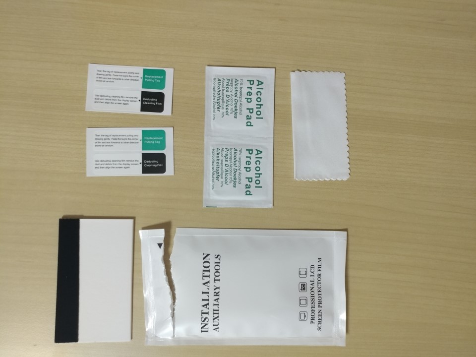 <다이아큐브 하드코팅 액정보호필름 설치킷 구성품>